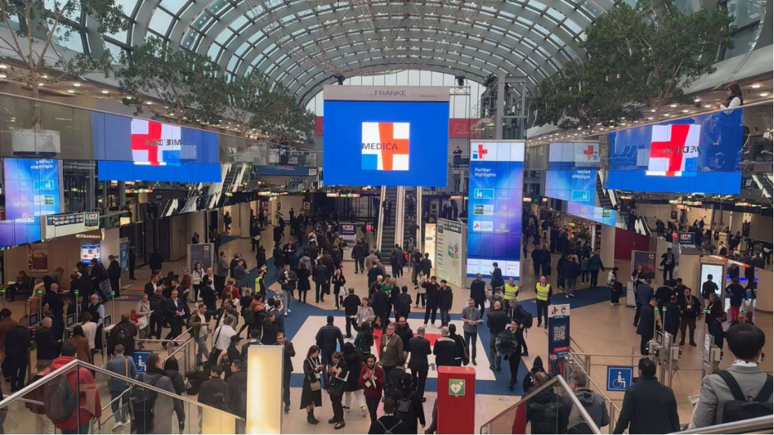 11月13日,2023年第55屆德國杜塞爾多夫國際醫院及醫療設備展覽會 (簡稱MEDICA)開幕,來自全球超萬家醫療公司匯聚于此。MEDICA作為世界知名的綜合性醫療展,被公認為世界上最大的醫院及醫療設備展覽會,以其不可替代的規模和影響力位居世界醫療貿易展的首位。每年固定在德國的杜塞爾多夫召開,展示從門診治療到住院治療整個領域內的各種產品和服務,參展產品包括醫療設備用品的所有常規大類以及醫療通訊信息科技、醫用家具設備、醫用場地建筑技術、醫療設備管理等。